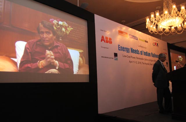 Honourable Union Minister of Railways Mr. Suresh Prabhakar Prabhu addressing the delegates of Energy Needs of Indian Railways through a video conference Apr 11-12,2016 at Delhi